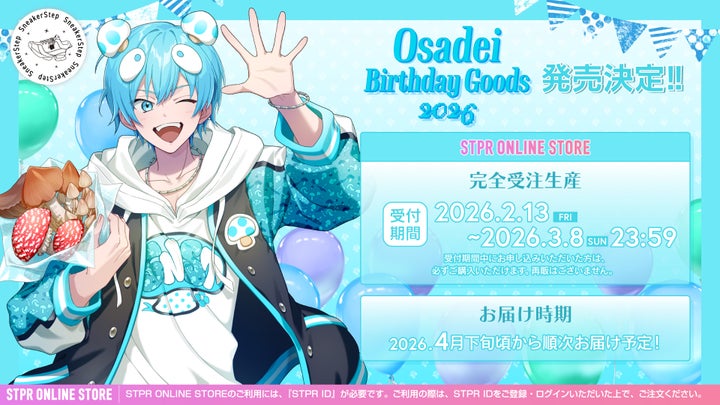 「おさでい BIRTHDAY GOODS 2026」は、2026年2月13日(金)から3月8日(日)23:59まで、STPR ONLINE STOREにて完全受注販売されます。商品は2026年4月下旬より順次発送される予定です。