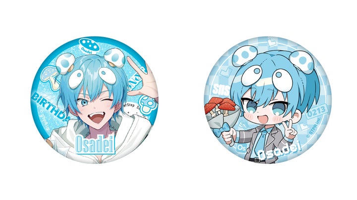 今回のバースデーグッズには、「おさでい」さんの誕生日を記念した特別な描き下ろしイラストが使用されています。イラストでは、「おさでい」さんの象徴である「きのこ」の花束を抱え、きのこモチーフの衣装に身を包んだ笑顔の「おさでい」さんが描かれています。日頃の応援への感謝と、ファン「メイツ」の皆さんへの深い愛情が込められた、特別なビジュアルです。