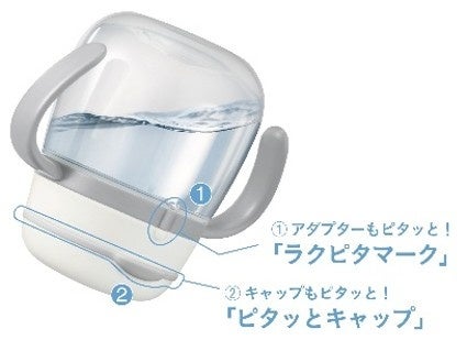 「Wラクピタ構造」により、アダプターマークに合わせた締め方とキャップの確実な閉鎖で、内容物の漏れをダブルで防ぎます。※誤使用や経年劣化による場合を除く