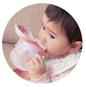 6ヵ月頃からの使用を推奨する本シリーズは、赤ちゃんがくわえやすく吸いやすいストロー形状を採用しています。さらに「ふき出し防止弁」を搭載し、ストローからの漏れを防ぐ設計です。