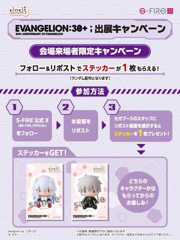 イベント会場限定で、SNSキャンペーンを実施します。S-FIRE公式Xアカウント(旧Twitter)をフォローし、キャンペーン投稿をリポスト(リツイート)すると、「ふわぷち デフォルメフィギュア ステッカー」をプレゼントします。