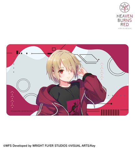 デスクに敷いたり、部屋に飾ったりして楽しめるマルチデスクマットです。茅森月歌のイラストと集合デザインの2種類があります。