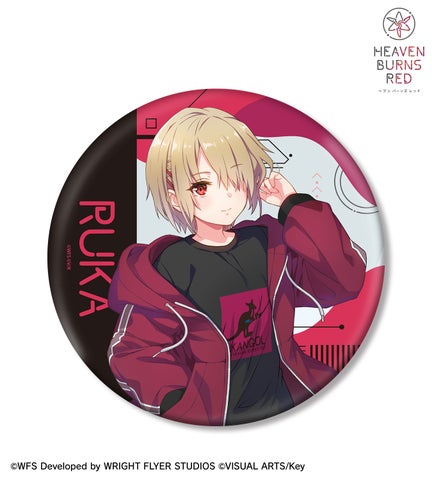 コラボロゴと茅森月歌の描き下ろしイラストをデザインした、直径約15.2cmのBIGサイズの缶バッジです。ピン、スタンド、壁掛けパーツが付属し、多様な方法で飾れます。