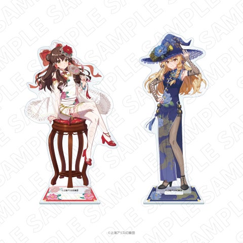 デスク周りやお気に入りの場所に飾れるアクリルスタンドは、博麗霊夢と霧雨魔理沙それぞれの全身イラストを堪能できます。新規描き下ろしのチャイナドレス風衣装を細部まで楽しむことが可能です。