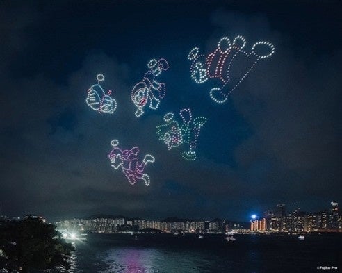 2024年に本イベントの皮切りとなった香港では、世界初となる『ドラえもん ドローンショー』が実施され、大きな話題となりました。ビクトリア・ハーバー上空に約1,000機のドローンが集結し、タケコプターで空を飛ぶドラえもんやひみつ道具、感動の名シーンを次々と描き出し、観光や経済にも大きな波及効果をもたらしました。