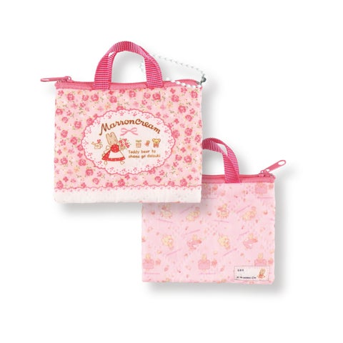 どこか懐かしさを感じるキルティング風生地のレッスンバッグを、そのまま小さくしたようなキーホルダーです。おなまえラベルや背面の総柄デザインなど、かつての思い出がよみがえるようなこだわりが随所に詰まっています。ファスナー付きの安心設計で、手持ちのリップやミラーなどを入れてポーチとしても活用できます。