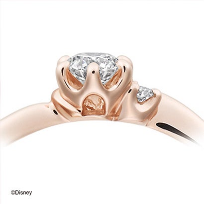 誕生日の夜空に放たれる不思議な光を見に行きたいという、ラプンツェルの「たったひとつの願い」を表現したモデルです。マリッジリングには1石のダイヤモンド、エンゲージリング側面にはティアラが隠されています。シンプルなデザインながら、キラキラと輝くテクスチャーがかわいらしいマリッジリングと、重ね着けしやすいボリューム感のエンゲージリングがぴったりと合うセットリングです。