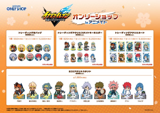 今回のオンリーショップでは、『イナズマイレブン 英雄たちのヴィクトリーロード』より、各校のユニフォームをイメージしたオリジナル応援団衣装に身を包んだキャラクターたちの新商品が登場します。