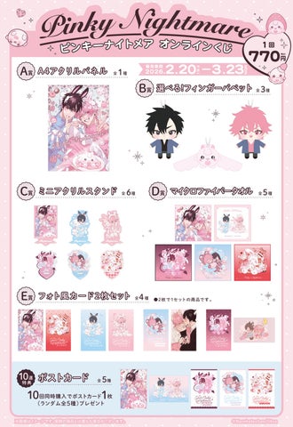 株式会社ブリッジが運営するオンラインくじサービス「くじとも」より、BL漫画『ピンキーナイトメア』のオンラインくじが2026年2月20日(金)18時より販売を開始します。なれはてちゃん先生の新規描き下ろしイラストを使用した全19種のオリジナルグッズが登場します。