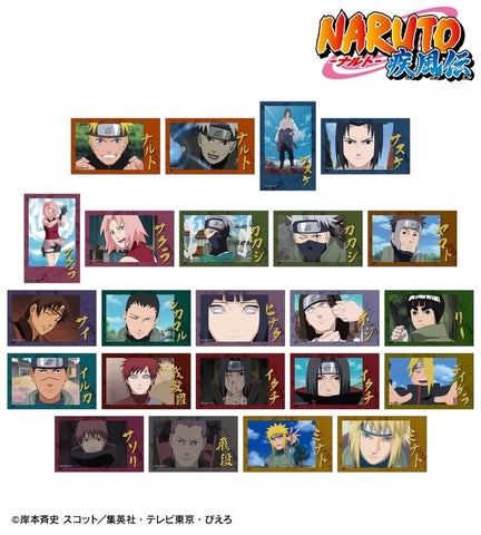 うずまきナルト、うちはサスケ、春野サクラ、はたけカカシ、ヤマト、サイ、奈良シカマル、日向ヒナタ、日向ネジ、ロック・リー、うみのイルカ、我愛羅、うちはイタチ、デイダラ、サソリ、飛段、波風ミナト |