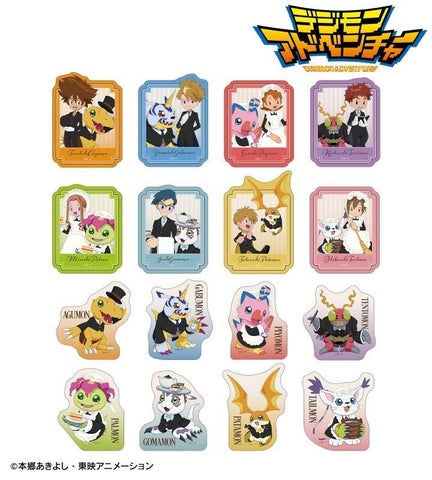 全8種(八神太一&アグモン、石田ヤマト&ガブモン、武之内空&ピヨモン、泉光子郎&テントモン、太刀川ミミ&パルモン、城戸丈&ゴマモン、高石タケル&パタモン、八神ヒカリ&テイルモン)