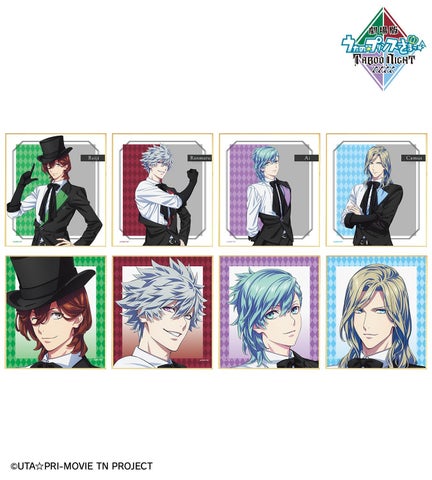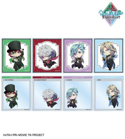 ちびキャラビジュアルを使用したトレーディング仕様のアクリルカードです。寿 嶺二、黒崎蘭丸、美風 藍、カミュの全8種がラインナップされています。