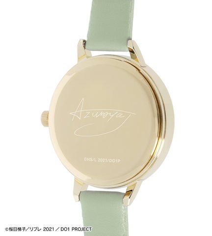 東谷准太モデルの腕時計は、白と金を基調とした本体に、鮮やかな黄緑色のベルトを組み合わせたデザインです。盤面の1時の位置には、抱かれたい男「1位」にちなんだ王冠のモチーフを配置しました。さらに、彼の名前と、モチーフである天使の羽をあしらっています。