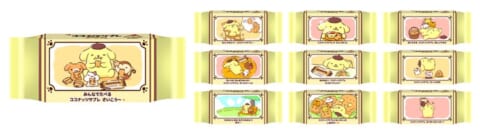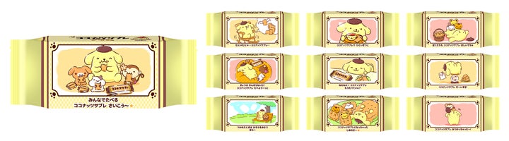 「ポムポムプリン」の大好物である“プリン”をイメージし、カスタード風味の生地にカラメルパウダーを練り込んだ、ふんわりとした甘さとコクのある味わい。特別に描き下ろした「ポムポムプリンとお友だち」をあしらった期間限定パッケージで、小分け包装ではオリジナルストーリー (全10種類) を展開します。