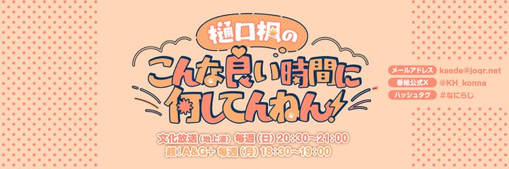 音楽活動やYouTube配信に加え、文化放送にて毎週日曜日20:30~21:00、QloveR 超!A&G+にて毎週月曜日21:00~21:30に放送中のラジオ番組「樋口楓のこんな良い時間に何してんねん!」でパーソナリティを務めています。番組では、ひとりで話したり、ゲストを招いてトークを繰り広げたりと、VTuberとしての新たな魅力を発信しています。