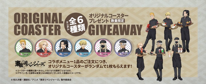 コラボメニューを1品注文するごとに、オリジナルコースターをランダムで1枚プレゼントします。