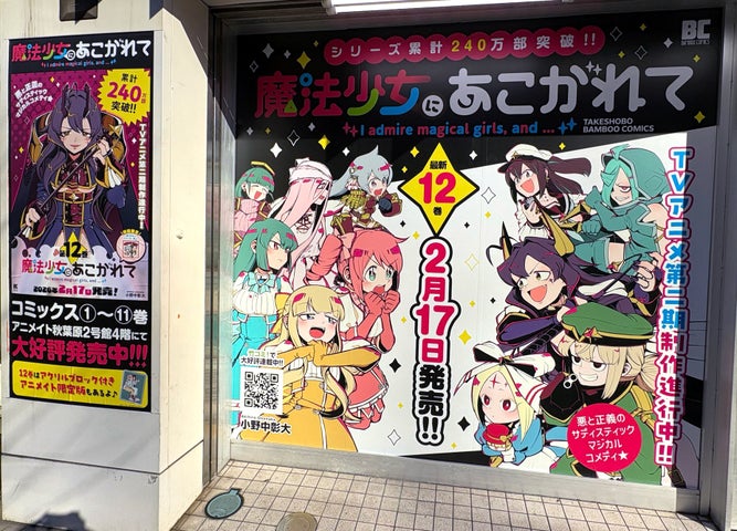 アニメイト秋葉原ショーウィンドウにて、『魔法少女にあこがれて』の広告を掲出中です。こちらは2026年2月28日までの掲示です。