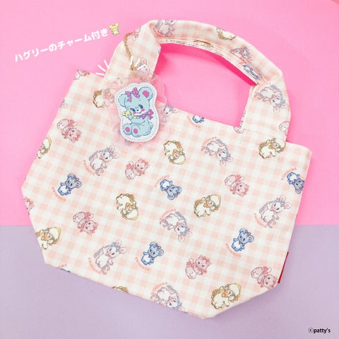 ハグリーのチャームが目を引く総柄のミニトートバッグです。丈夫なポリエステルキャンバス素材を使用しています。