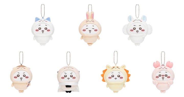 ちいかわが他のキャラクターの着ぐるみを身につけた、なりきりマスコットです。ミニサイズでボールチェーン付きのため、バッグに付けて持ち歩けます。