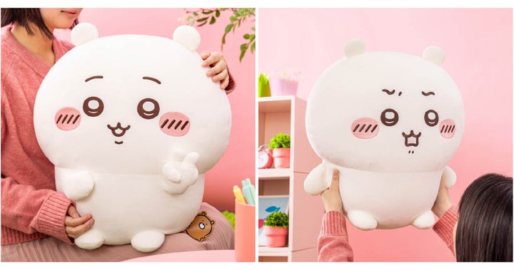全長約44cmのビッグサイズぬいぐるみです。「ピース」と「ヤダッ」の2種類があり、モチモチとした感触を楽しめます。