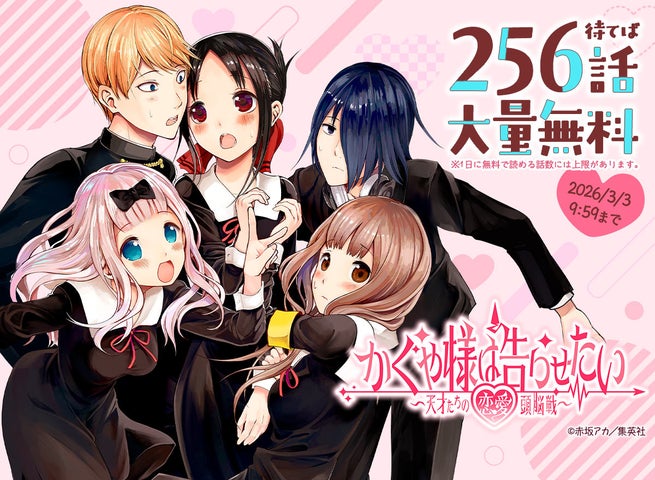 めちゃコミックは、バレンタインキャンペーンの一環として、人気作品『かぐや様は告らせたい~天才たちの恋愛頭脳戦~ カラー版』を期間限定で最大256話まで無料で提供します。