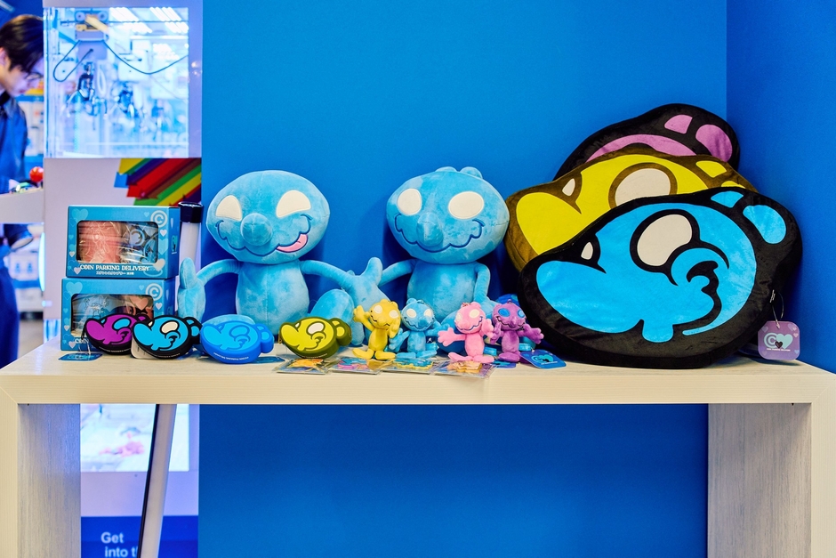 本イベントでは、BIGぬいぐるみ、マスコットぬいぐるみ、フェイスクッション、ラバーマスコット、ミニフィギュア、シリコンポーチ、ステンレスタンブラーセットの計7点の限定コラボグッズを展示しました。特に「白井さん」のBIGぬいぐるみは、来場者から大変好評を博し、即時完売となりました。また、COIN PARKING DELIVERYデザインの特別仕様クレーンゲームがGiGO渋谷とGiGO大阪道頓堀本店に設置されています。さらに、COIN PARKING DELIVERYがデザインしたスタイリッシュなゲーム機が多数登場し、アートとゲームが融合した世界観を提供しました。