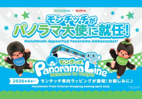世界中で愛されるキャラクター「モンチッチ」が東京モノレール「東京パノラマライン」のパノラマ大使に就任し、2026年2月20日より特別ラッピング列車を運行します。