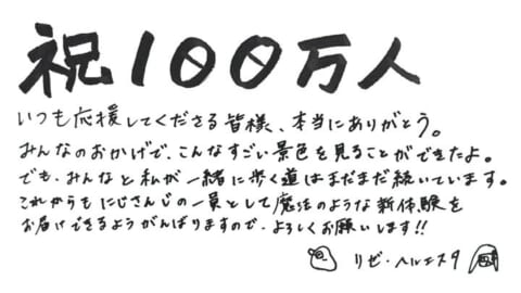 リゼ・ヘルエスタ YouTube登録者数100万人突破の概要