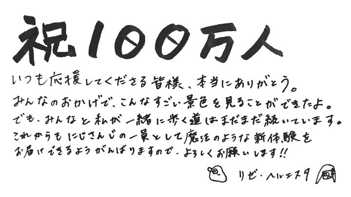 ANYCOLOR株式会社が運営するVTuber / バーチャルライバーグループ「にじさんじ」所属の「リゼ・ヘルエスタ」が、YouTubeチャンネル登録者数100万人を達成しました。