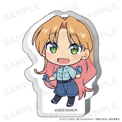 厚さ8mm、約50mmのコンパクトながらも存在感のあるアクリルスタンドです。「谷川 瑠璃」と「荒砥 凪」の2種類で展開し、奥行きのあるデザインが特徴です。デスク周りや棚に飾って、キャラクターとの日常を楽しめます。