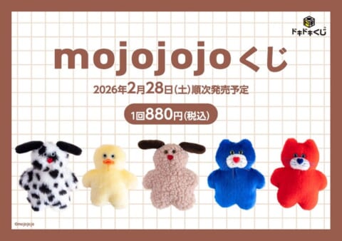 廣川株式会社が展開する「ドキドキくじ」より、ぬいぐるみ・雑貨ブランド「mojojojo」とのタイアップくじが2026年2月28日(土)から順次発売されます。ここでしか手に入らない限定アイテムを展開する注目のくじです。