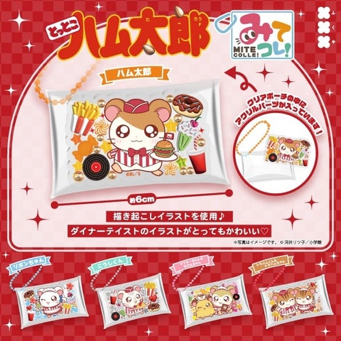 クリアポーチの中に描き起こしイラストのアクリルパーツが入った、ガチャ詰めポーチをモチーフにしたチャームブランド「みてコレ!」が登場します。こちらもダイナー風のデザインが特徴です。
