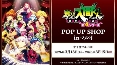 アニメ「魔入りました!入間くん」のPOP UP SHOPが2026年3月13日より北千住マルイで開催します。新規先行グッズや購入特典を提供します。