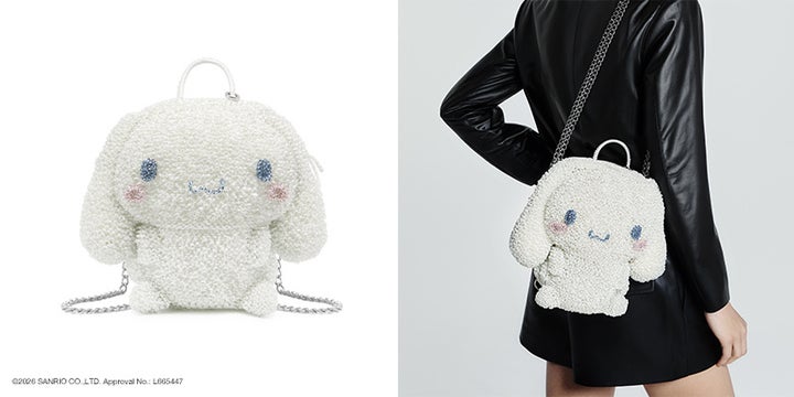 シナモロールは、白いふわふわの毛、青い瞳、ピンクのほっぺ、そしてシナモンロールのようなしっぽが特徴です。雲の上で生まれ、大きな耳で空を飛ぶことができ、控えめで純粋な心を持つキャラクターとして世界中で愛されています。アンテプリマは、シナモロールの魅力をそのままに反映し、細部にまでこだわり抜いたバックパック、ショルダーバッグ、ポーチの3型を展開します。