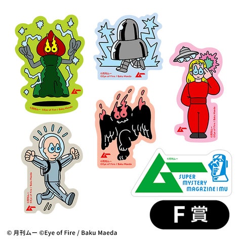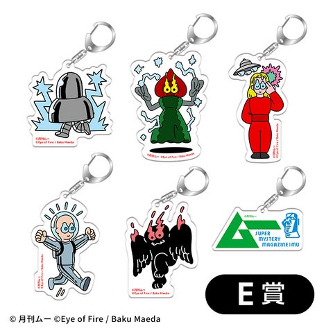 人気イラストレーター・アーティストの前田麦氏のライフワークである「Eye of Fire」シリーズと「ムー」が初コラボレーションします。燃える目を持つUMAや宇宙人たちが登場し、アクリルスタンドやビッグTシャツなど、普段使いできる商品を中心に構成されています。ラスト賞は歴代の表紙画像を使用したモザイクアクリルボードです。