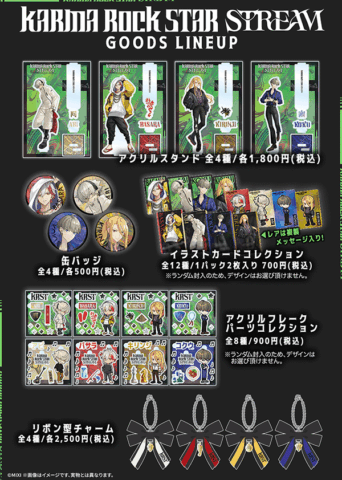 「モンソニ!」の新プロジェクト「カルマロックスターストリーム」のグッズが初登場します。カルマロックスターを中心に、モンソニ!の男性アーティストにフォーカスした新たな展開です。期間中、特大パネルや録り下ろしボイスが来場者をお出迎えします。