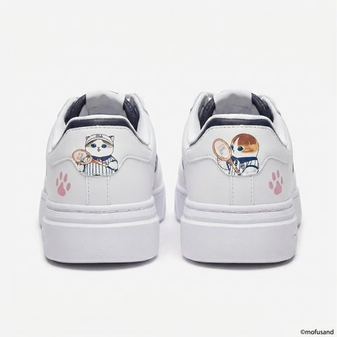 伝説のテニスプレイヤー、ビョルン・ボルグが着用していた通称「ボルグジャケット」を身に纏ったにゃんこや、テニスボールを被った愛らしいにゃんこたちがスニーカーに登場します。FILAのテニスにおける伝統的なヘリテージと、mofusandのキュートな世界観が融合し、唯一無二の仕上がりを実現しました。