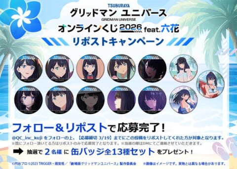 2026年2月20日より「『グリッドマン ユニバース』オンラインくじ 2026 feat.六花」が販売開始しました。宝多六花に特化した全22種のオリジナルグッズが1回825円(税込)で手に入ります。本記事では、このオンラインくじの開催内容や参加方法を詳しく紹介しますので、ぜひ参考にしてください。