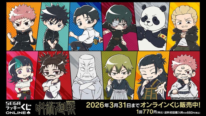 TVアニメ『呪術廻戦』「死滅回游」をテーマにした「セガ ラッキーくじオンライン」が2026年2月20日より販売開始。セガ限定デフォルメイラストの賞品が登場します。