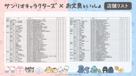「お文具といっしょ」×「サンリオキャラクターズ」販売商品取り扱い店舗