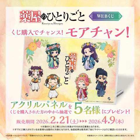 「TVアニメ『薬屋のひとりごと』WEBくじ」が2026年2月21日より販売を開始しました。花冠をテーマにした描き下ろしイラストグッズが、全国の販売店舗とオンラインくじサイトにて登場します。