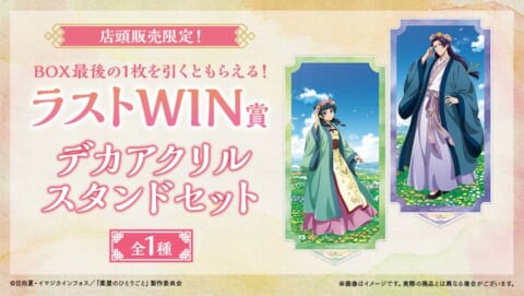 店頭の「WEBくじ出張所」で、BOXの最後のくじを引くと必ずもらえる豪華特典です。猫猫と壬氏のデカアクリルスタンドセット(全1種)が進呈されます。
