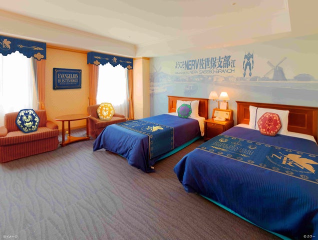 オフィシャルホテル「ホテルデンハーグ」に『エヴァンゲリオン』の世界観を満喫できるコンセプトルーム「NERV佐世保支部職員 臨時宿泊専用仕様 ホテルデンハーグ特別室」が誕生します。ハウステンボスならではのヨーロピアンテイストと『エヴァンゲリオン』の世界が融合した特別な空間で、ハウステンボス限定の描き下ろしイラストも登場します。
