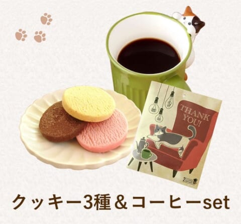 癒やしのティータイム「にゃんこマグカップ+クッキー3種&コーヒーセット」