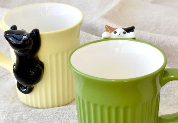 「にゃんこマグカップ+クッキー3種&コーヒーセット」は、通常価格3,979円(税込み)で、思わず笑顔になるデザインが特徴です。カップのフチからひょっこり顔を出す猫や、飲むたびに目が合う「ひょっこり&しがみつき」デザインのマグカップで、いつものティータイムが至福のひとときへと変わります。マグカップだけでなく、3種のクッキーとドリップコーヒーがセットになっているため、届いてすぐに癒やしのカフェタイムを楽しめます。