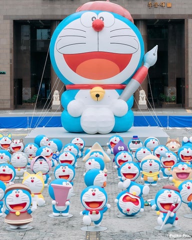 - さまざまな表情やポージングが特徴的なドラえもんを中心に、バリエーション豊かな等身大ドラえもんが登場します。