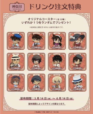 本カフェでは、“港町レトロ”をイメージした通期メニューに加え、劇場版『名探偵コナン ハイウェイの堕天使』を記念した期間限定メニューを提供します。メニュー注文特典として「クリアカード」や「コースター」などをプレゼントします。