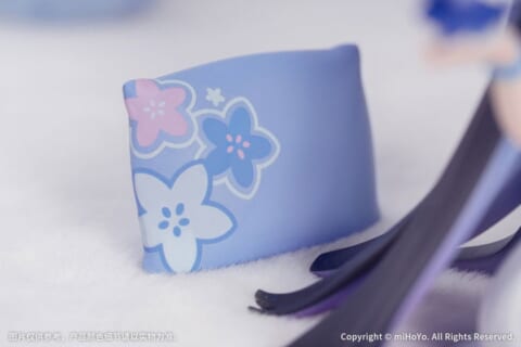 本フィギュアでは、甘い印象のノースリーブワンピースをまとったゼーレが、ちょこんと横座りする姿で立体化されました。深みのあるロングヘアは自然に垂れ、半透明の花の髪飾りや胸元のリボンにはパール塗装が施され、細部まで丁寧に表現されています。