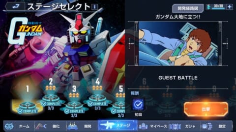 数多く存在するガンダム作品の物語を追体験できるステージが用意されています。名台詞や名場面を迫力ある戦闘演出と共に体験し、楽しむことができます。