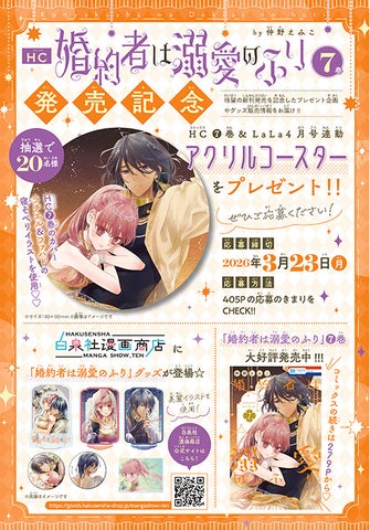 「婚約者は溺愛のふり」7巻の発売を記念し、HC7巻と『LaLa』4月号の連動プレゼント企画として「アクリルコースター」を実施します。応募の締め切りは2026年3月23日(月)当日消印有効です。本企画は紙版限定であり、電子版には応募券は付属しません。詳細は本誌と紙版初版帯をご確認ください。